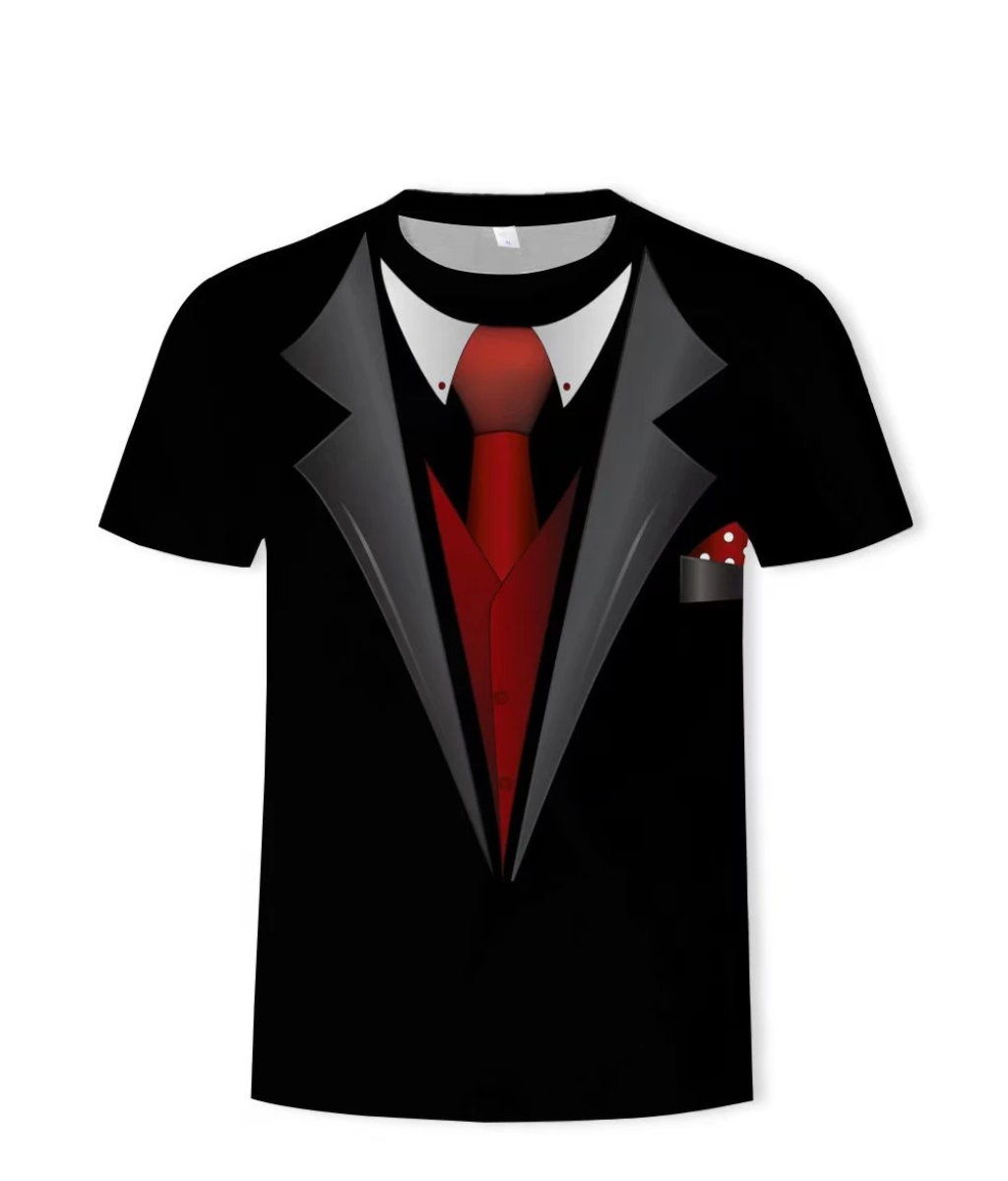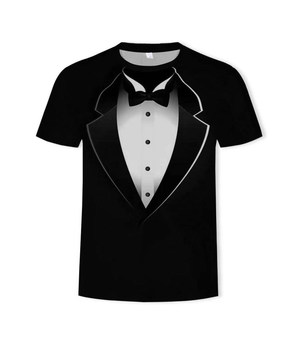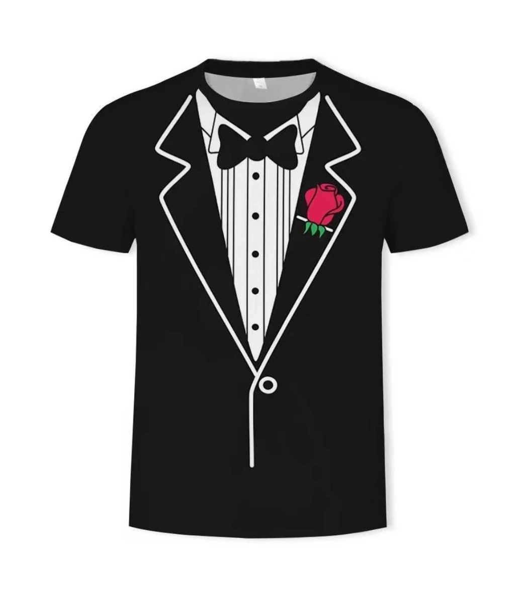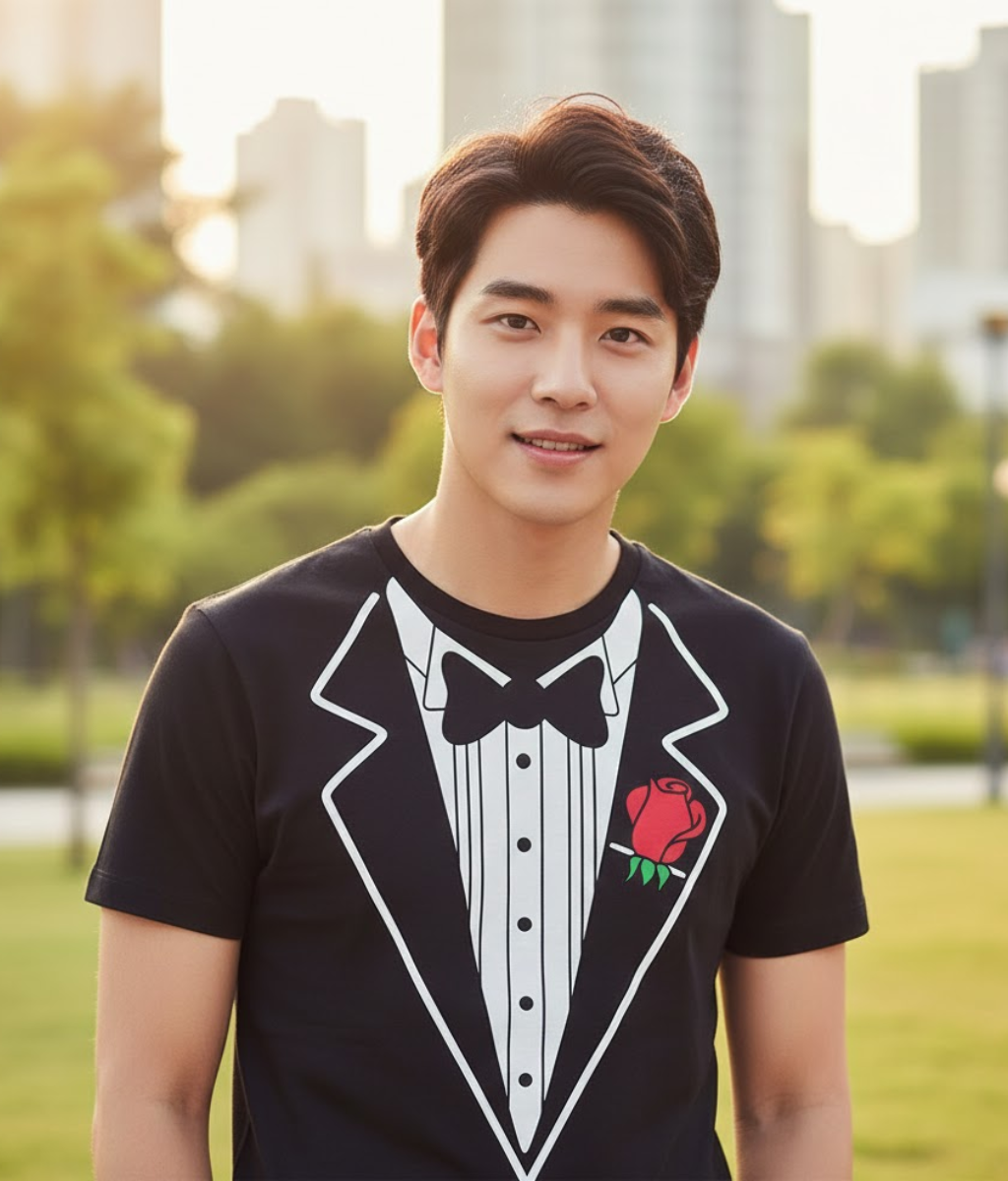 เปลี่ยนลุคธรรมดาให้ดูสะดุดตาด้วย เสื้อยืดลายสูทสุดกวน ที่ผสมผสานความเนี๊ยบของชุดทักซิโด้เข้ากับความสบายของเสื้อยืด เหมาะสำหรับสายปาร์ตี้ สายคอนเทนต์ หรือใครที่อยากแต่งตัวกึ่งทางการแบบไม่ต้องจัดเต็ม